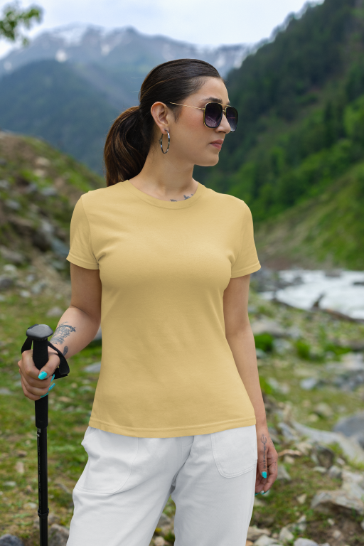Elevate your everyday essentials with this timeless women’s crew neck tee. Designed with a flattering silhouette and soft-touch fabric, it features a classic round neckline and half sleeves for a relaxed yet refined look. Perfect for layering or wearing solo, this tee pairs effortlessly with everything from denim to tailored trousers. A wardrobe staple redefined in premium comfort.